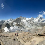 Zurück ging es über den Gletscher zum Furggji. Nach einem kurzen Aufstieg erreichten wir das Platthorn. Der 50. Gipfel der Liste, wurde mit einem weiteren Genpy gefeiert. Auch hier bestaunten wir ausgiebig das Top Panorama.