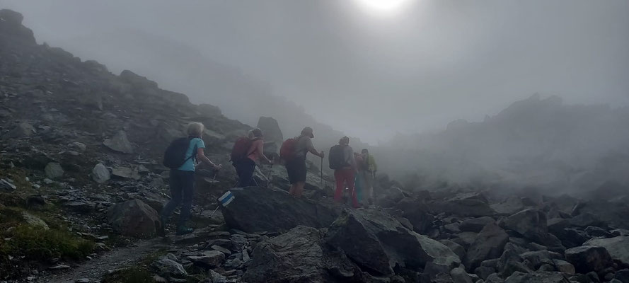 Weiter ging es leicht ansteigend zur Fluhalp. Von dort wurde es alpiner: Der Pfad zum Pfulwe-Gipfel forderte Kondition und Trittsicherheit, besonders im oberen Teil mit Geröll und steileren Passagen. Die Bewölkung hielt sich hartnäckig, bot aber eindrucksvolle Stimmungen.