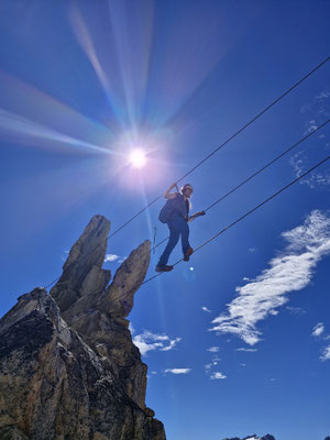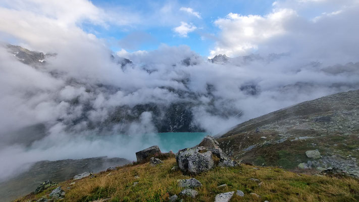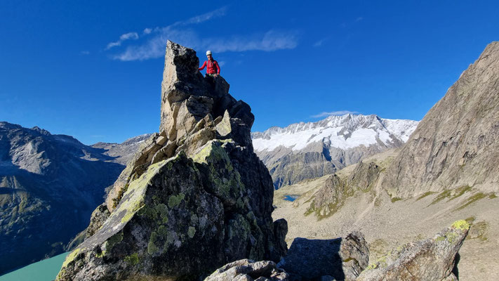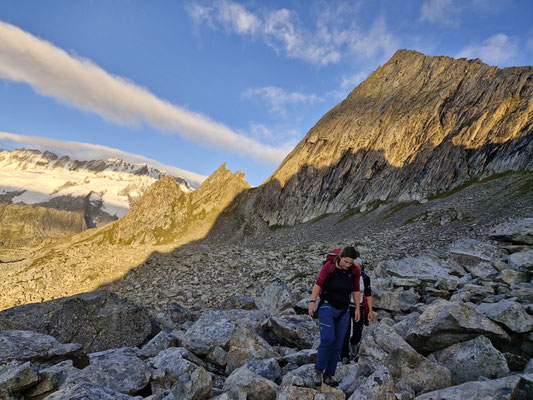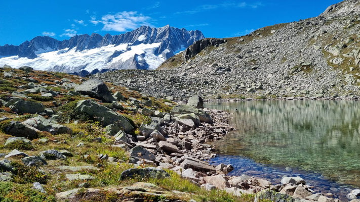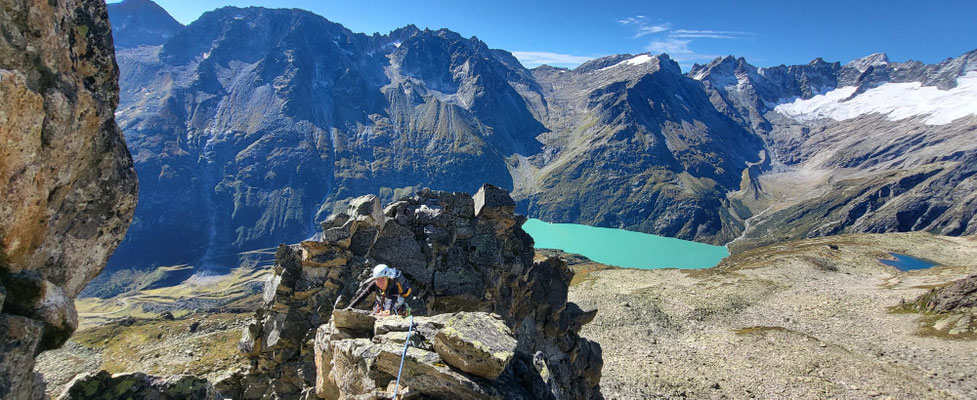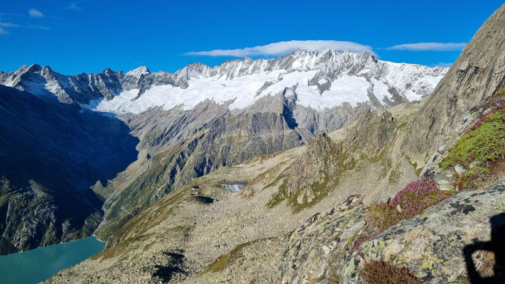 Nach zwei Abseilstellen und etwas Islandhopping auf dem Geröllfeld standen wir auch schon vor dem Gehege-Eingang zum Krokodil-Klettersteig. Der kurze Besuch mit einer schönen Aussicht hat sich gelohnt und schon gings zurück zur Hütte, wo noch eine Abkühlung im Aquarium (Bergsee) auf dem Programm stand. Nach einem erfrischenden Getränk machten wir uns auf den Abstieg in Richtung Göscheneralp und machten uns auf die lange Heimfahrt über den Furkapass.
