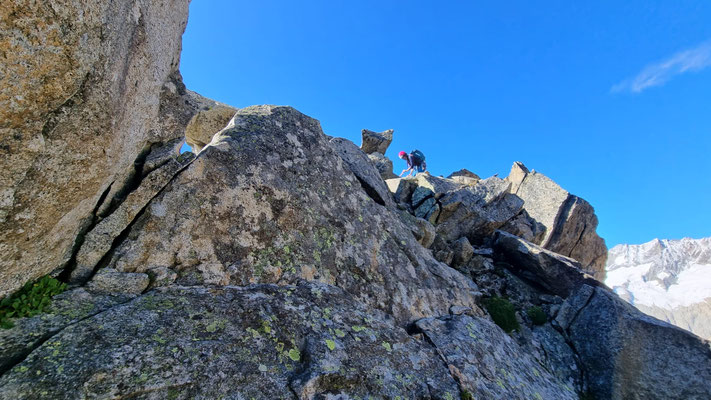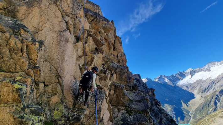 Tagwache am Sonntag war früh, so dass wir den Besuch zum Krokodil vom Vortag noch nachholen konnten. Doch zuerst konnten wir eine schöne Kletterei auf dem Grat der Hochseeschijen geniessen, wo wir unter anderem an einem Pinguin vorbei kletterten 😊.