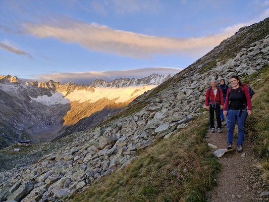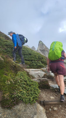 Kurz vor Mittag, mit unsicheren Wetterprognosen für unser Programm am Samstag haben wir uns trotzdem auf den langen Weg zur Göscheneralp gemacht. Auf Walliser Seite des Furkapasses war das Wetter noch trocken. Kaum auf der Kantonsgrenze hat der Regen eingesetzt und alles war nass. Wider Erwarten war dann die Göscheneralp trocken und wir konnten uns bei Sonnenschein auf den Hüttenaufstieg machen.