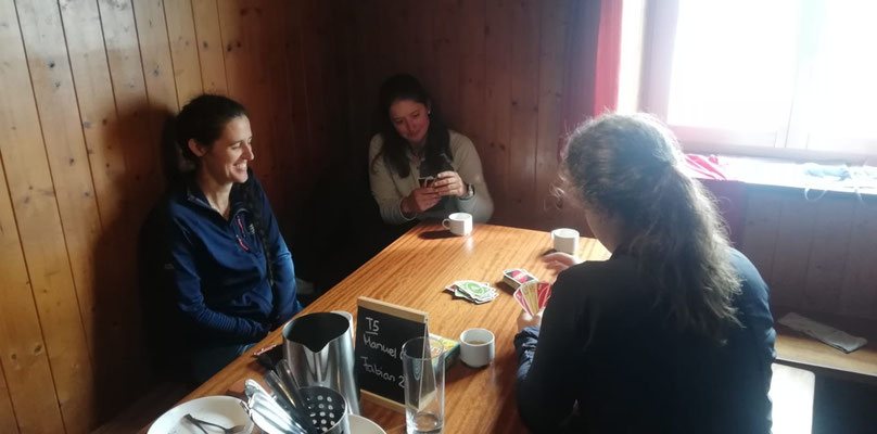 Es dauerte nicht lange, bis dann doch wieder der Regen einsetzte und wir etwas durchnässt in der Bergseehütte angekommen sind. Den Besuch zum Krokodil haben wir auf den nächsten Tag verschoben. Stattdessen haben wir analog zum letzten Jahr Memory und UNO gespielt.